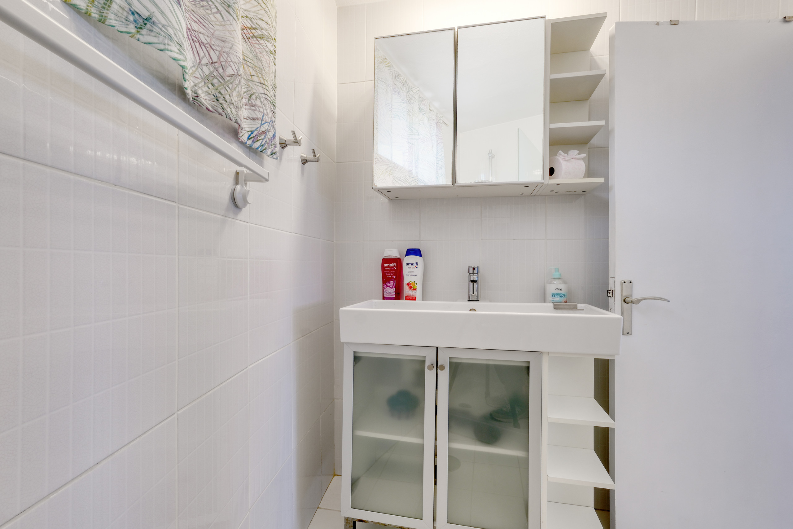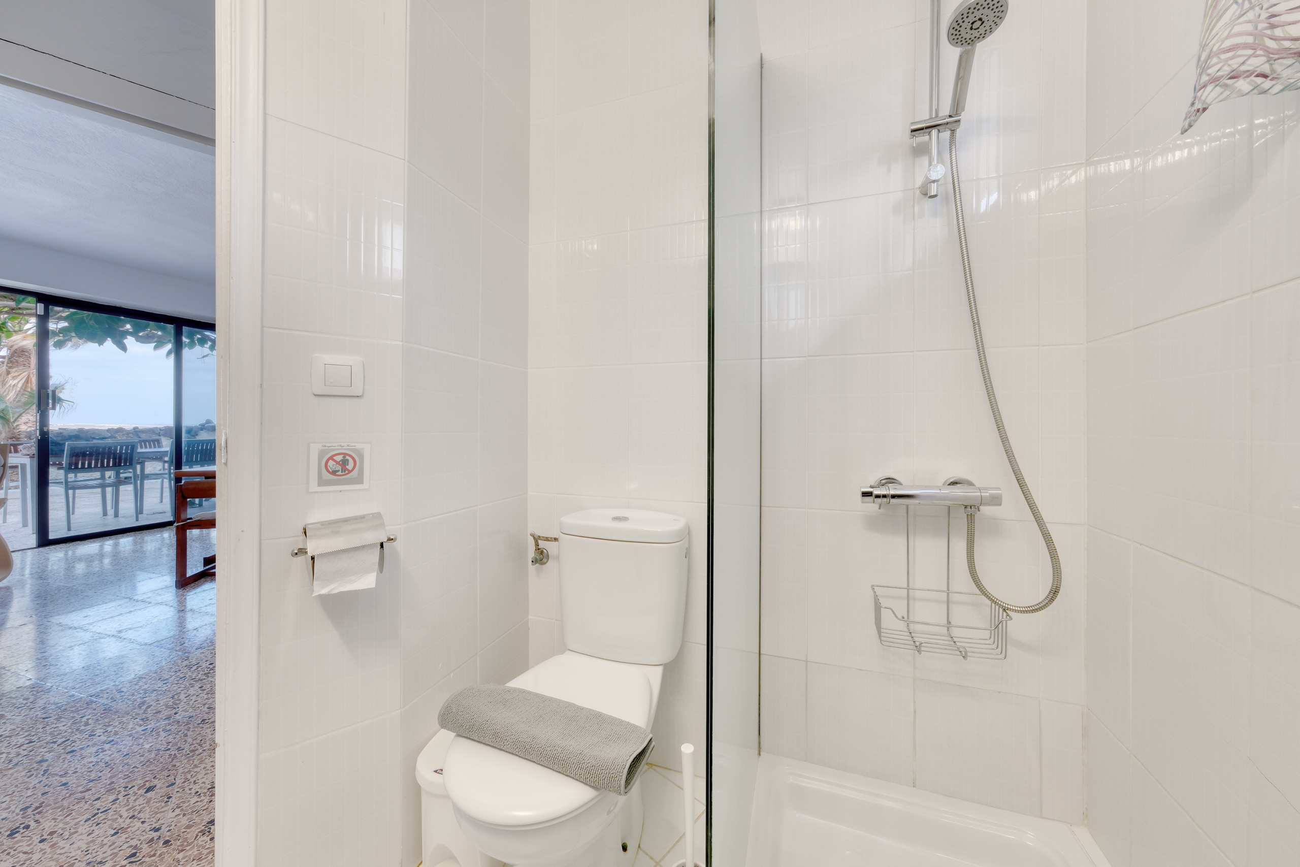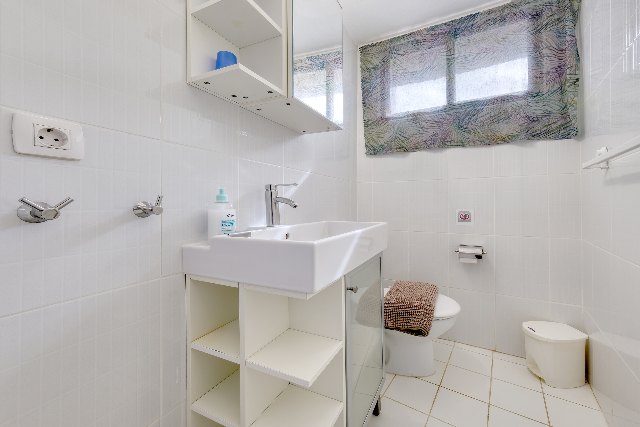 El baño está distribuido en dos estancias independientes, ofreciendo mayor comodidad durante la estancia. Una zona dispone de ducha y lavamanos, mientras que la otra cuenta con WC, un segundo lavamanos y lavadora, facilitando su uso simultáneo.