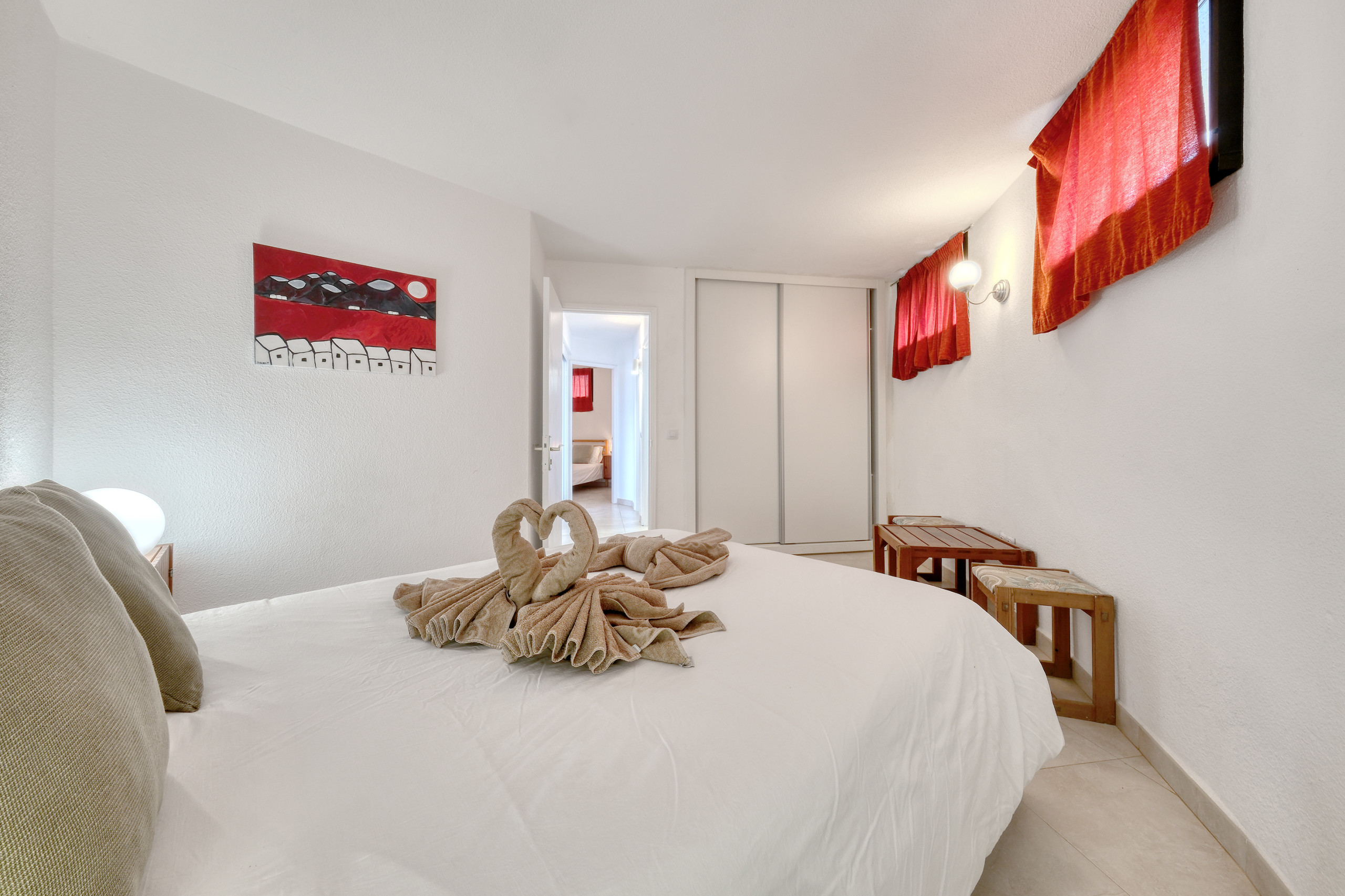 El bungalow cuenta con dos habitaciones cuidadosamente decoradas, pensadas para garantizar el descanso y la tranquilidad, una con cama doble y otra con dos camas individuales. Ambas ofrecen espacios luminosos y funcionales, con armarios y un estilo actual que combina comodidad y sencillez.