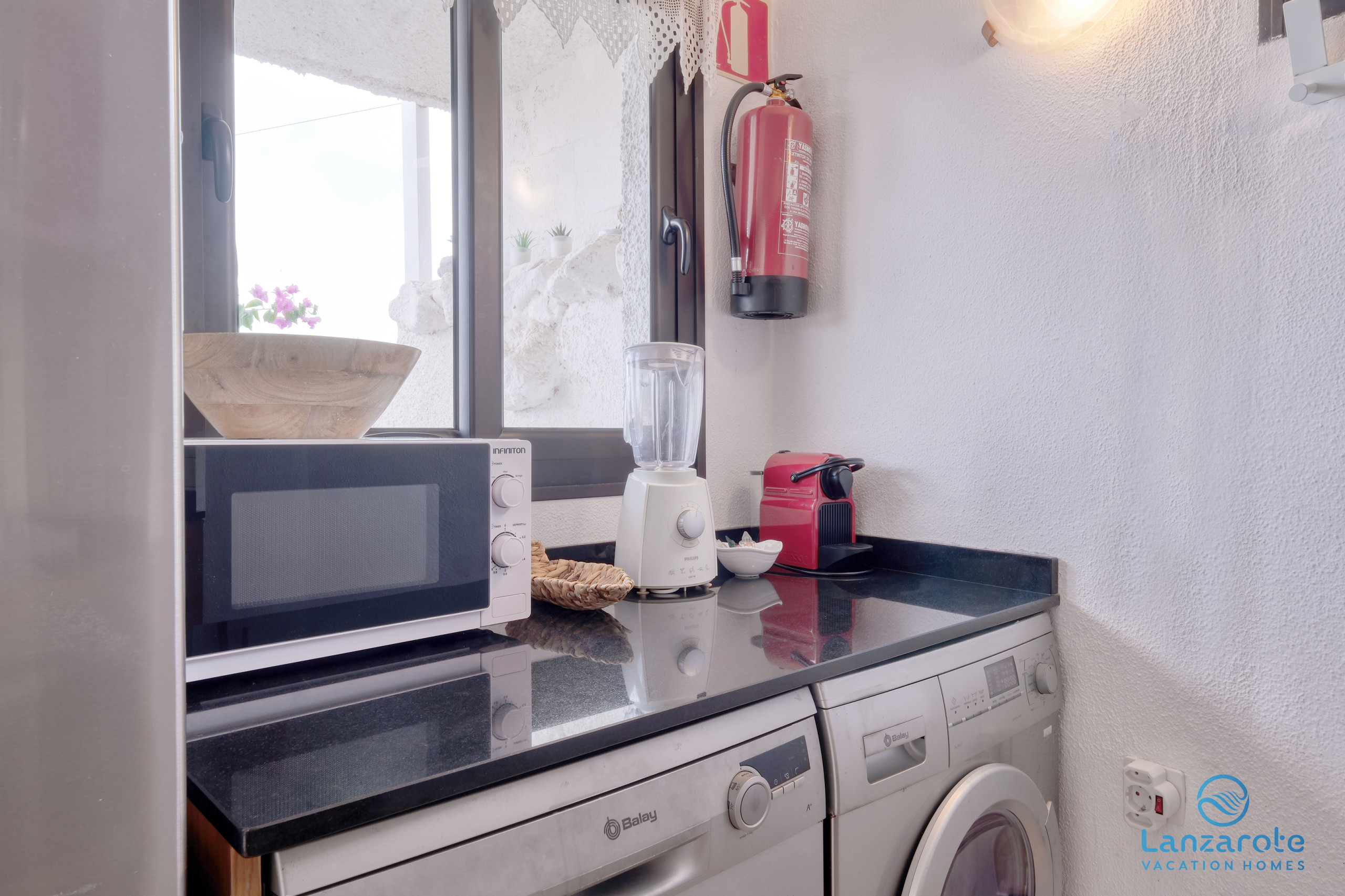 La cocina está completamente equipada con todo lo necesario para una estancia cómoda, incluyendo electrodomésticos, horno, microondas, nevera, cafetera, tostadora, hervidor, utensilios y todo lo necesario para disfrutar del alojamiento de forma autónoma.