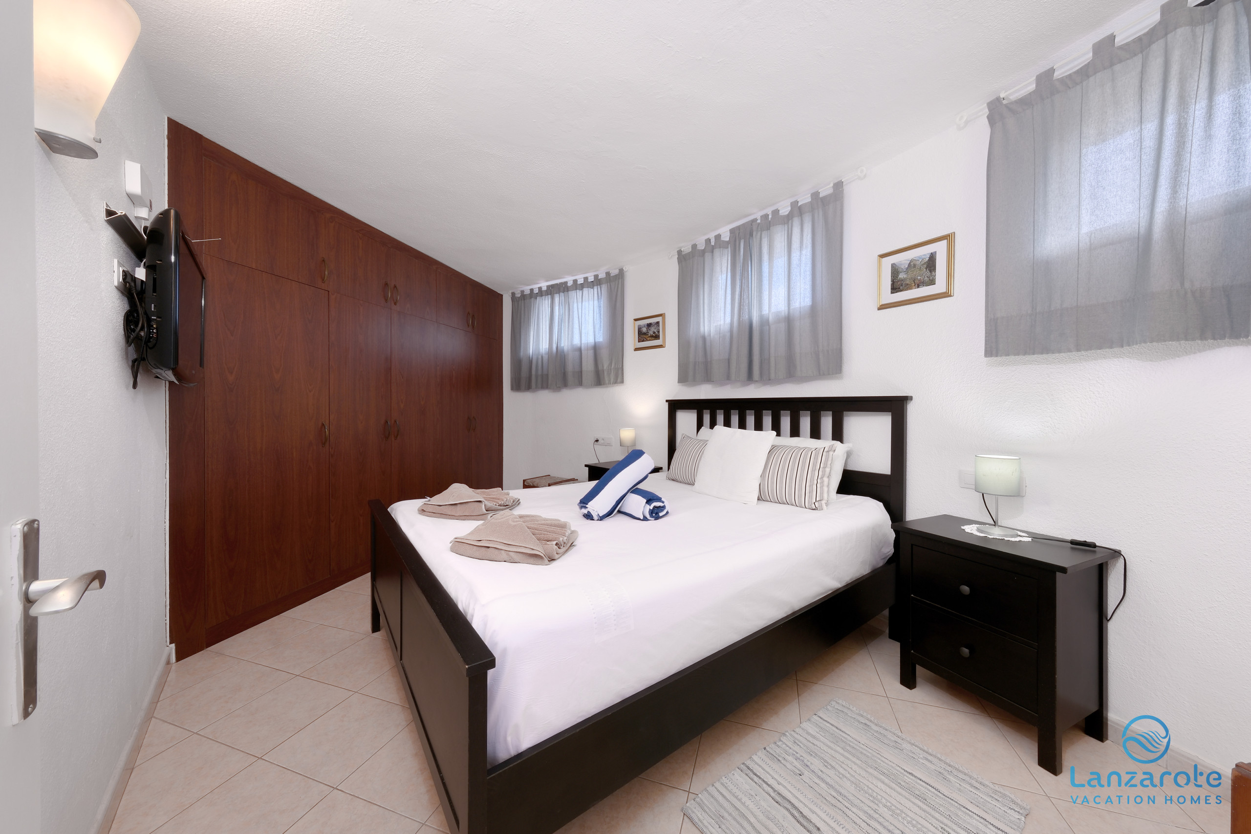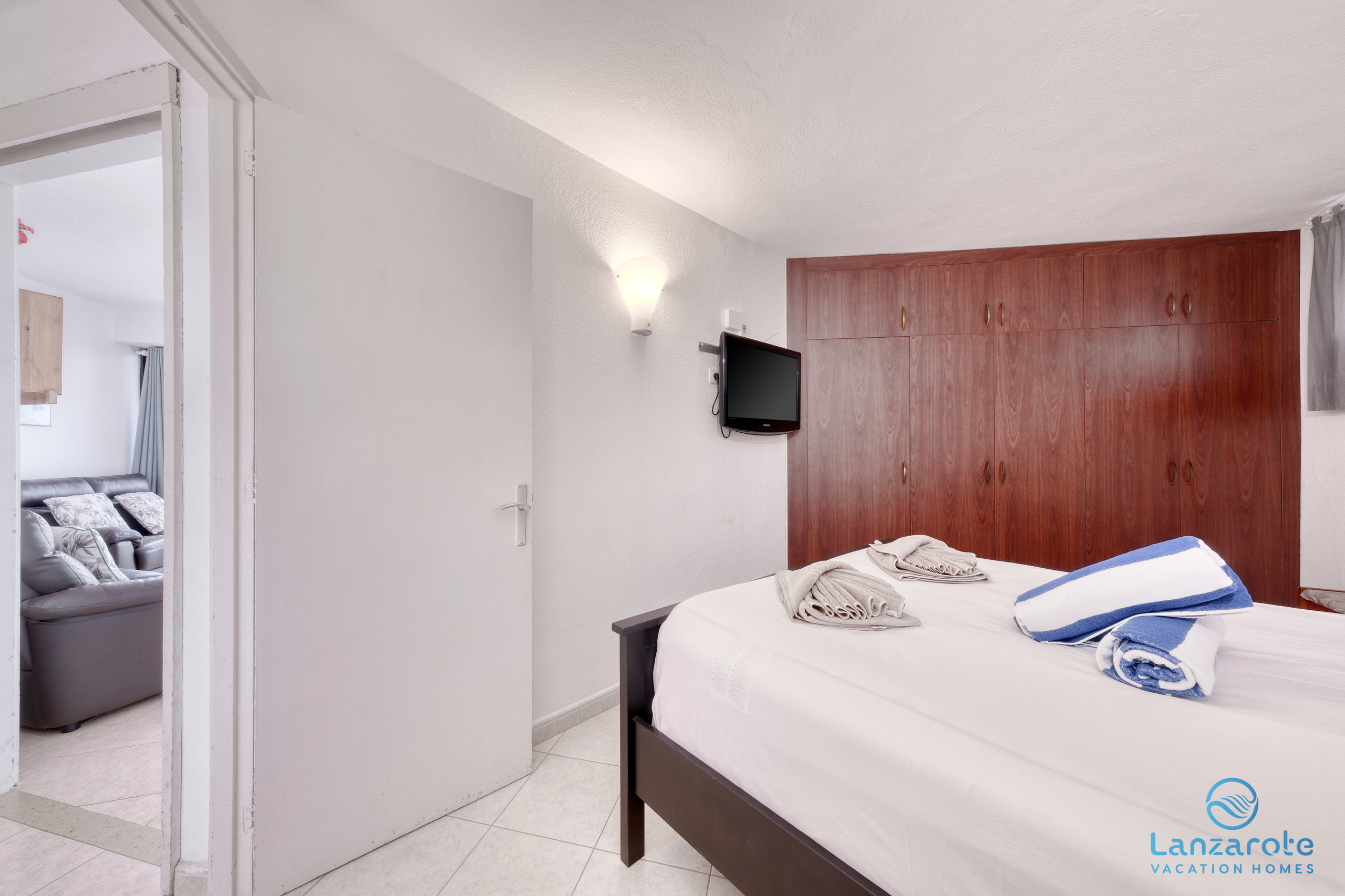 El bungalow dispone de dos habitaciones con cama de matrimonio y armarios empotrados diseñados para garantizar el descanso y la tranquilidad.