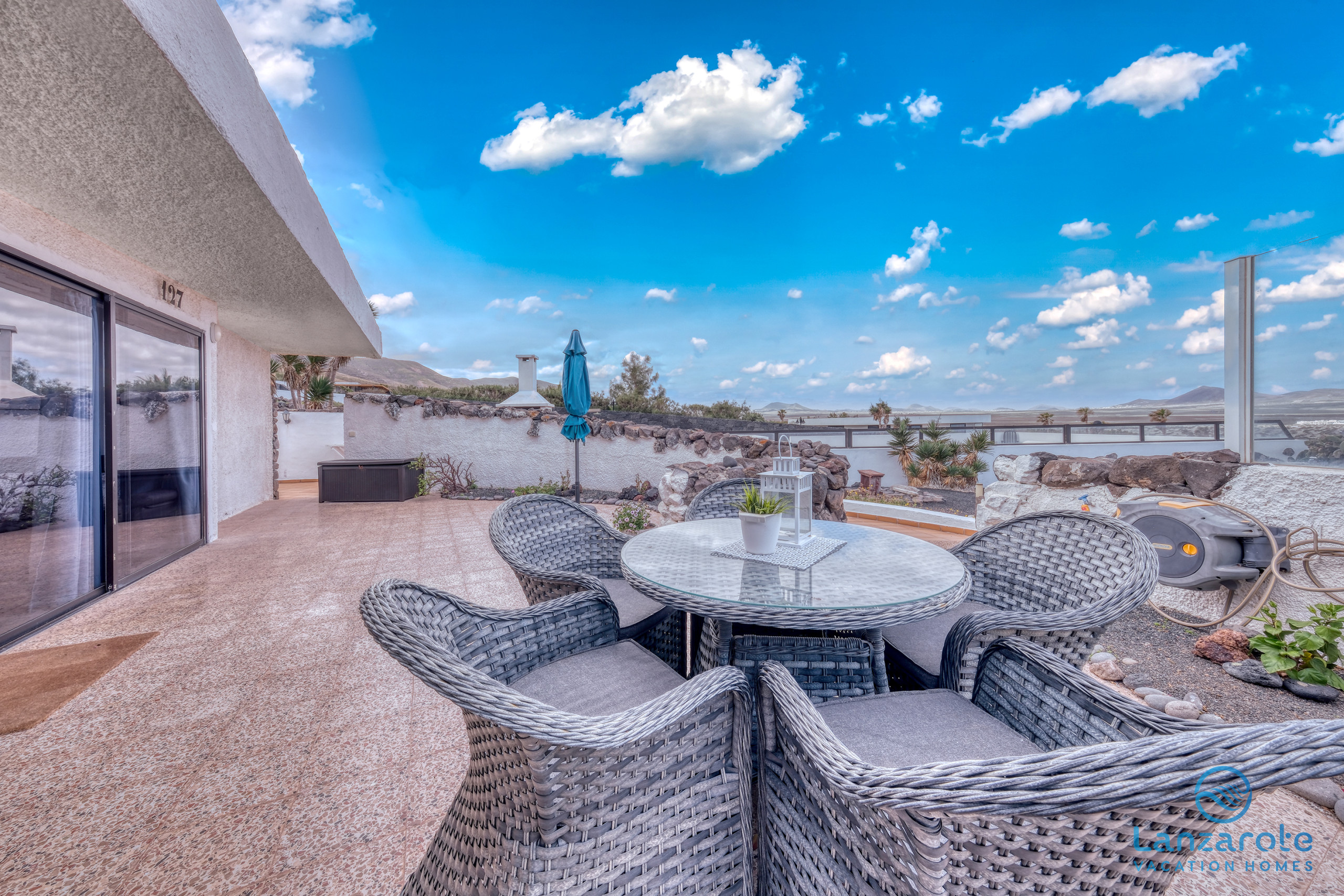 Lanzarote Vacation Homes (LVH) presenta Casa Buenavista Nº127, un magnífico bungalow con piscina climatizada y vistas espectaculares al Risco de Famara y la playa de Famara, ubicado en un barrio tranquilo, a solo 2 minutos a pie de la playa.