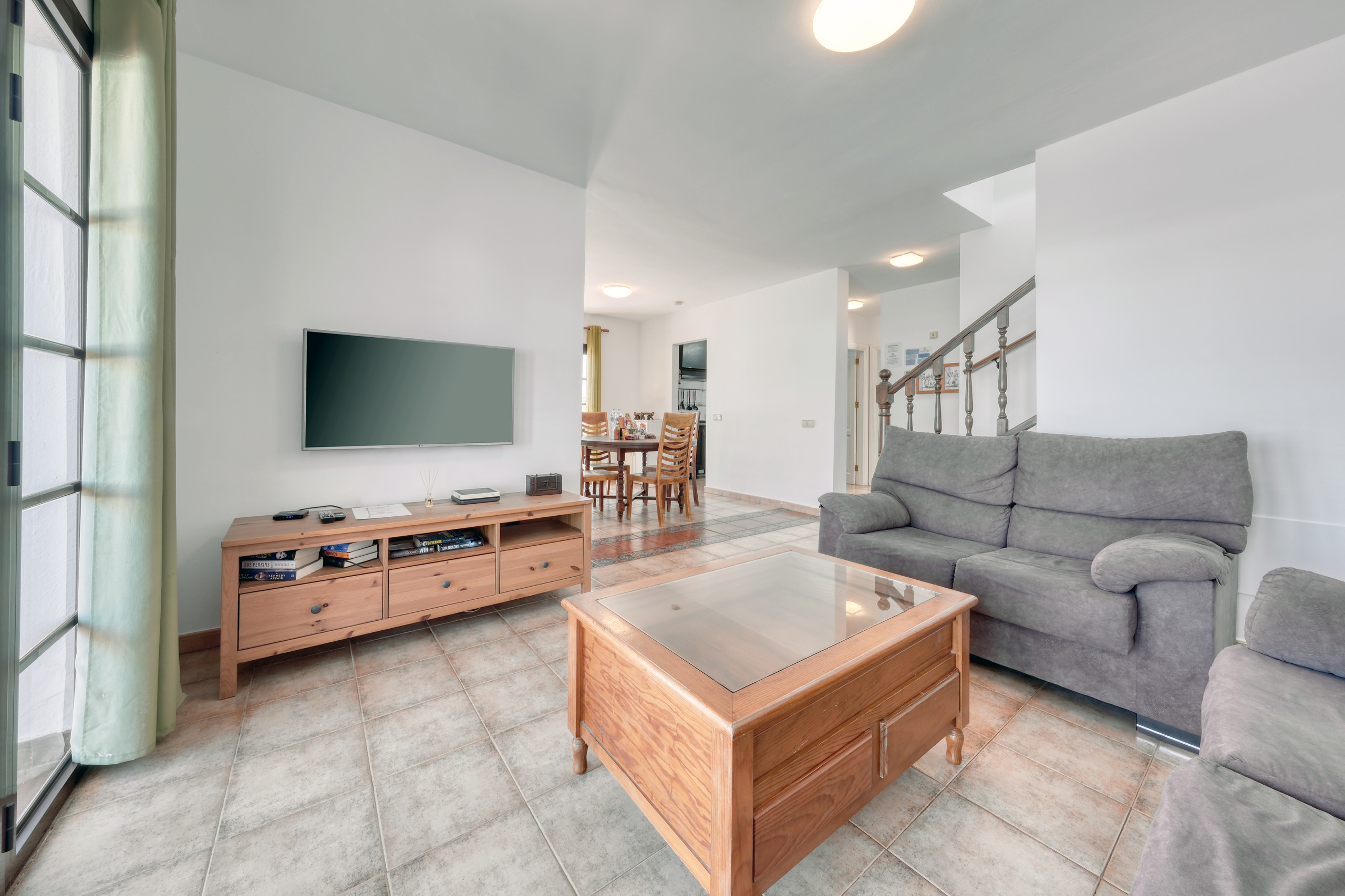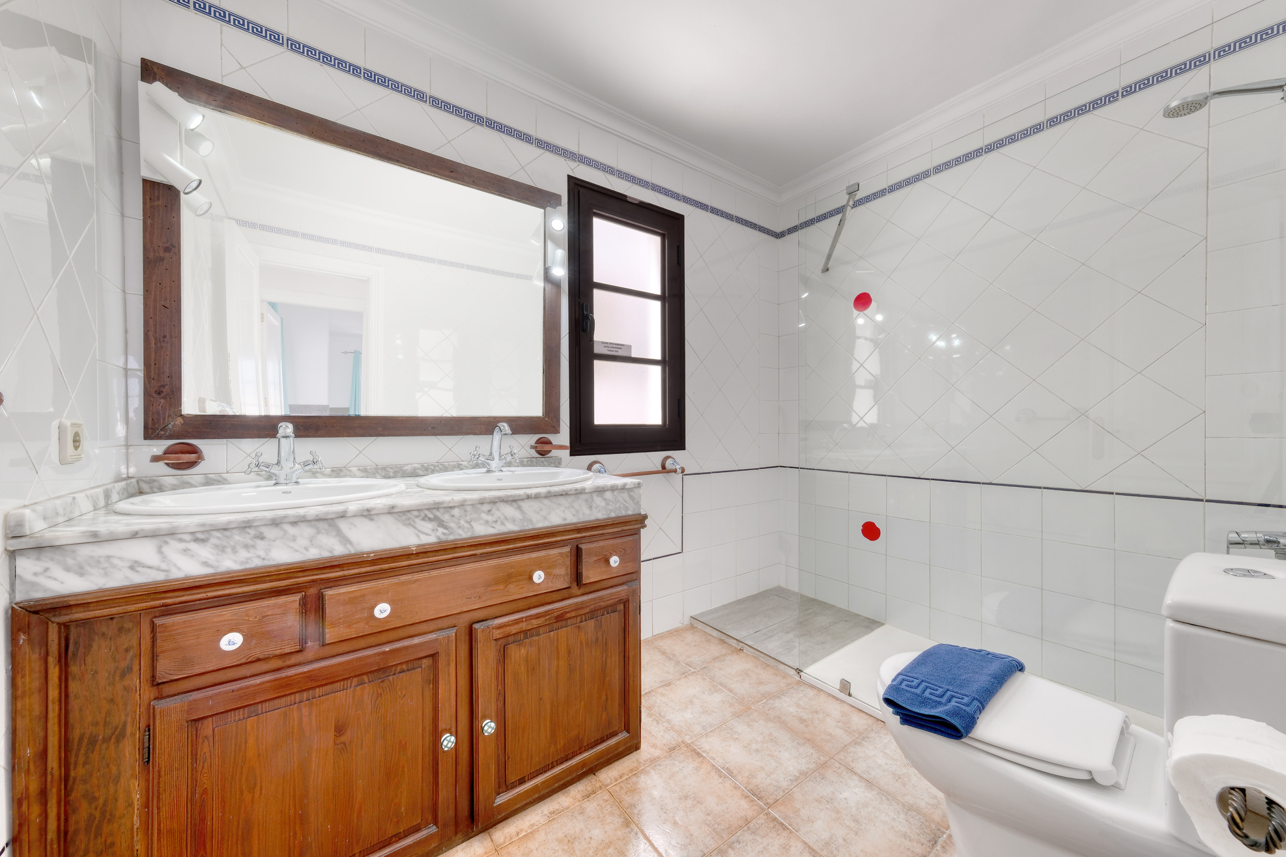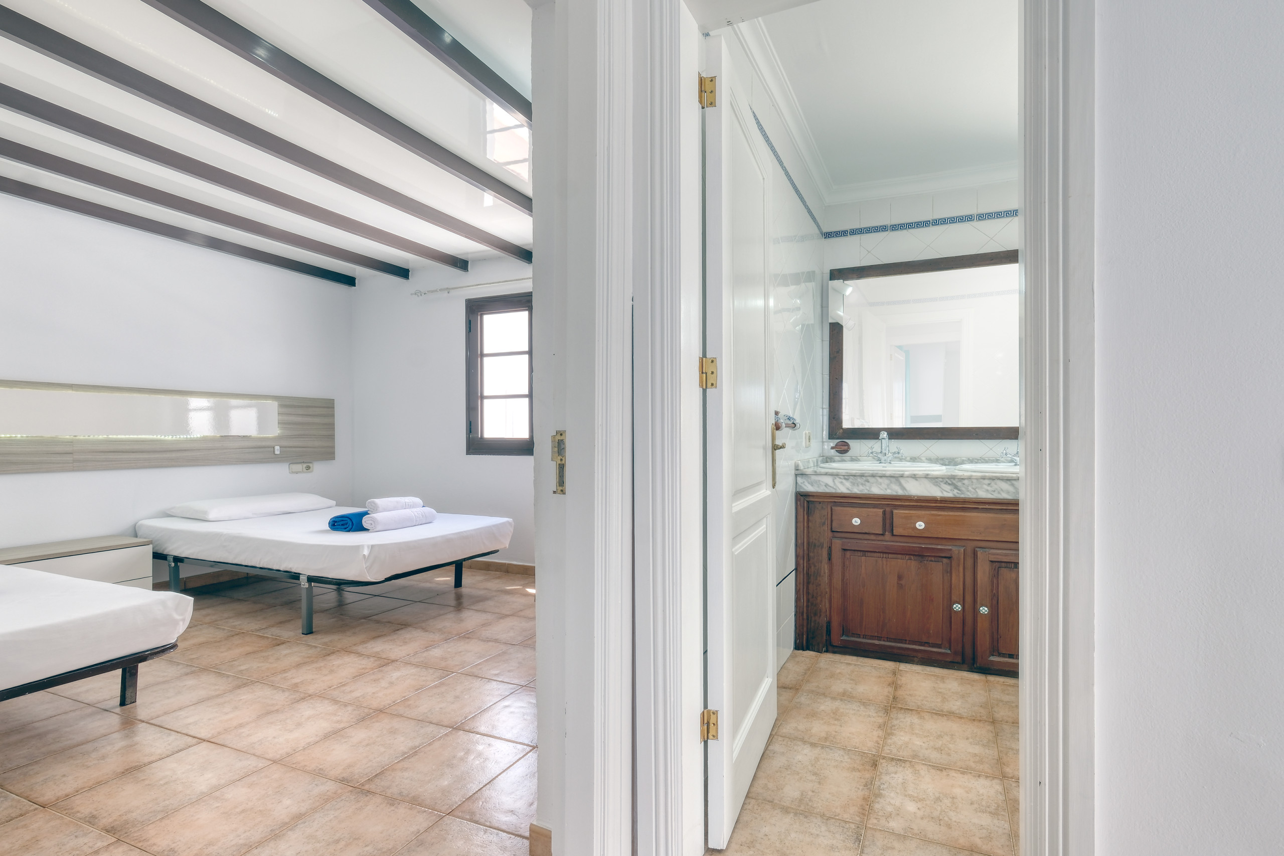 Villa El Rincón dispone de tres dormitorios cuidadosamente decorados, dos con camas individuales y una habitación principal con cama de matrimonio. La vivienda cuenta además con dos baños completos con ducha y secador de pelo, pensados para el máximo confort de todos los huéspedes.