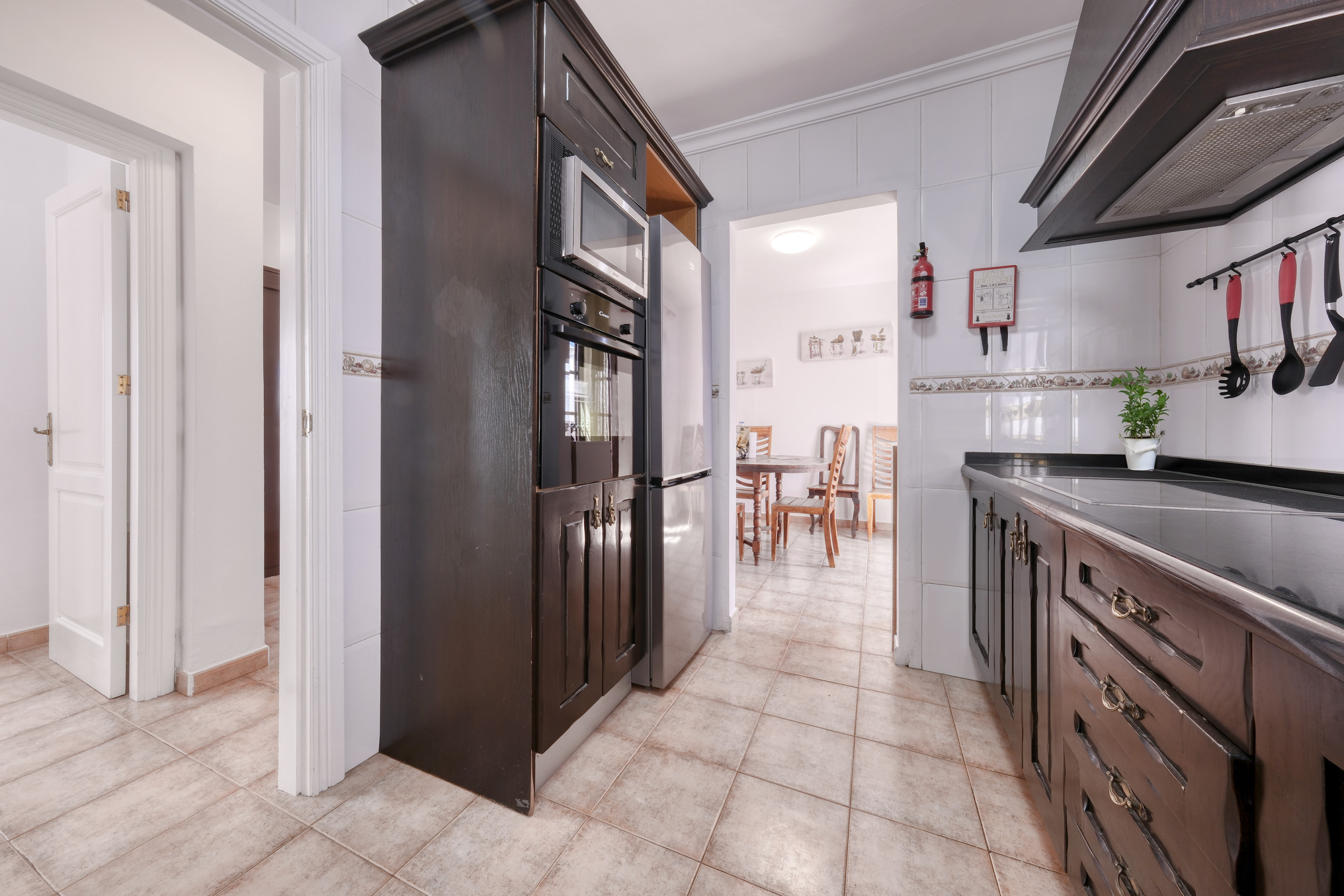 La vivienda cuenta con una cocina completamente equipada con placa de inducción, frigorífico, congelador, horno, microondas, lavavajillas, cafetera, tostadora y todo lo necesario para preparar comidas con el máximo confort durante la estancia.