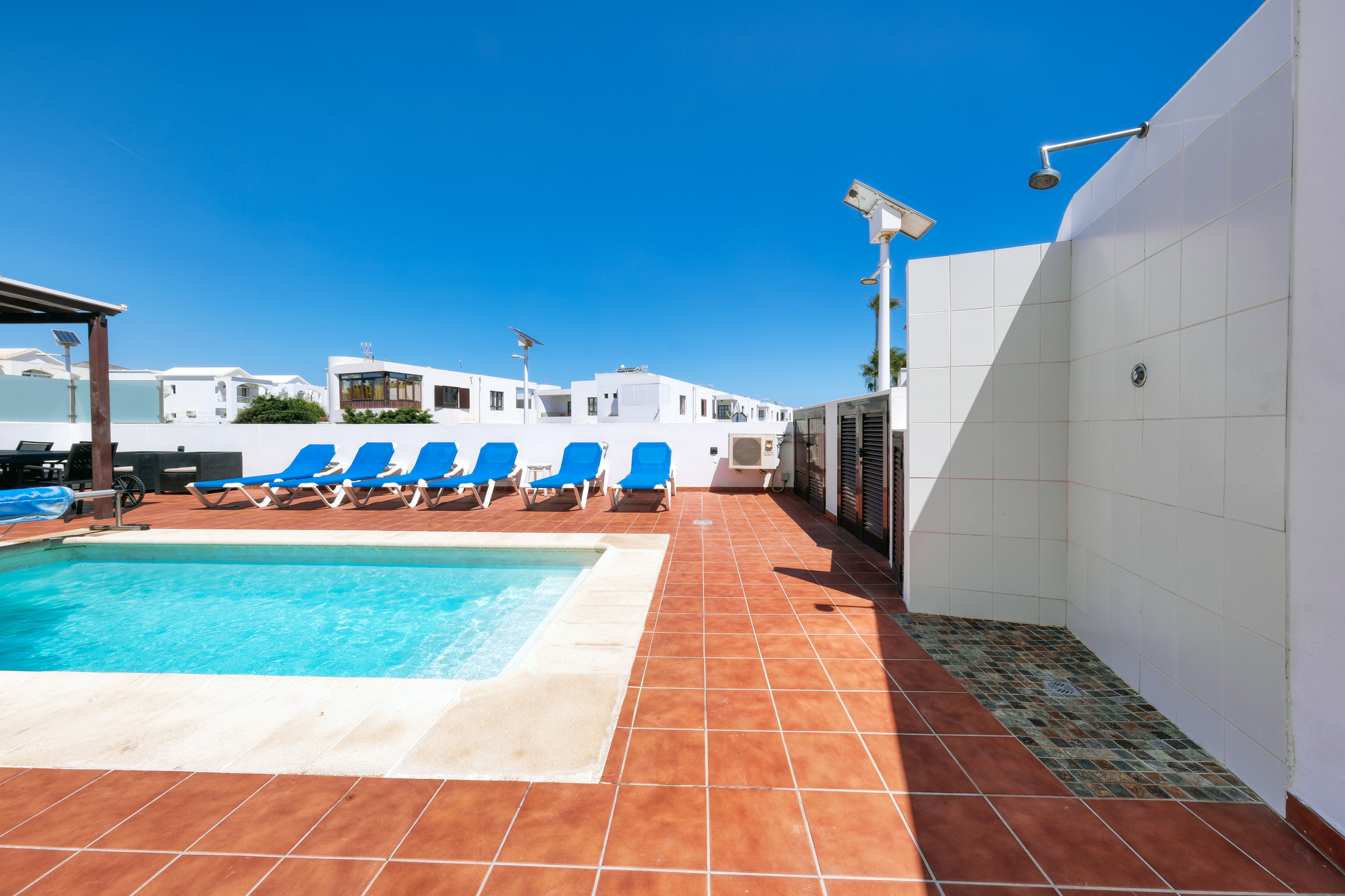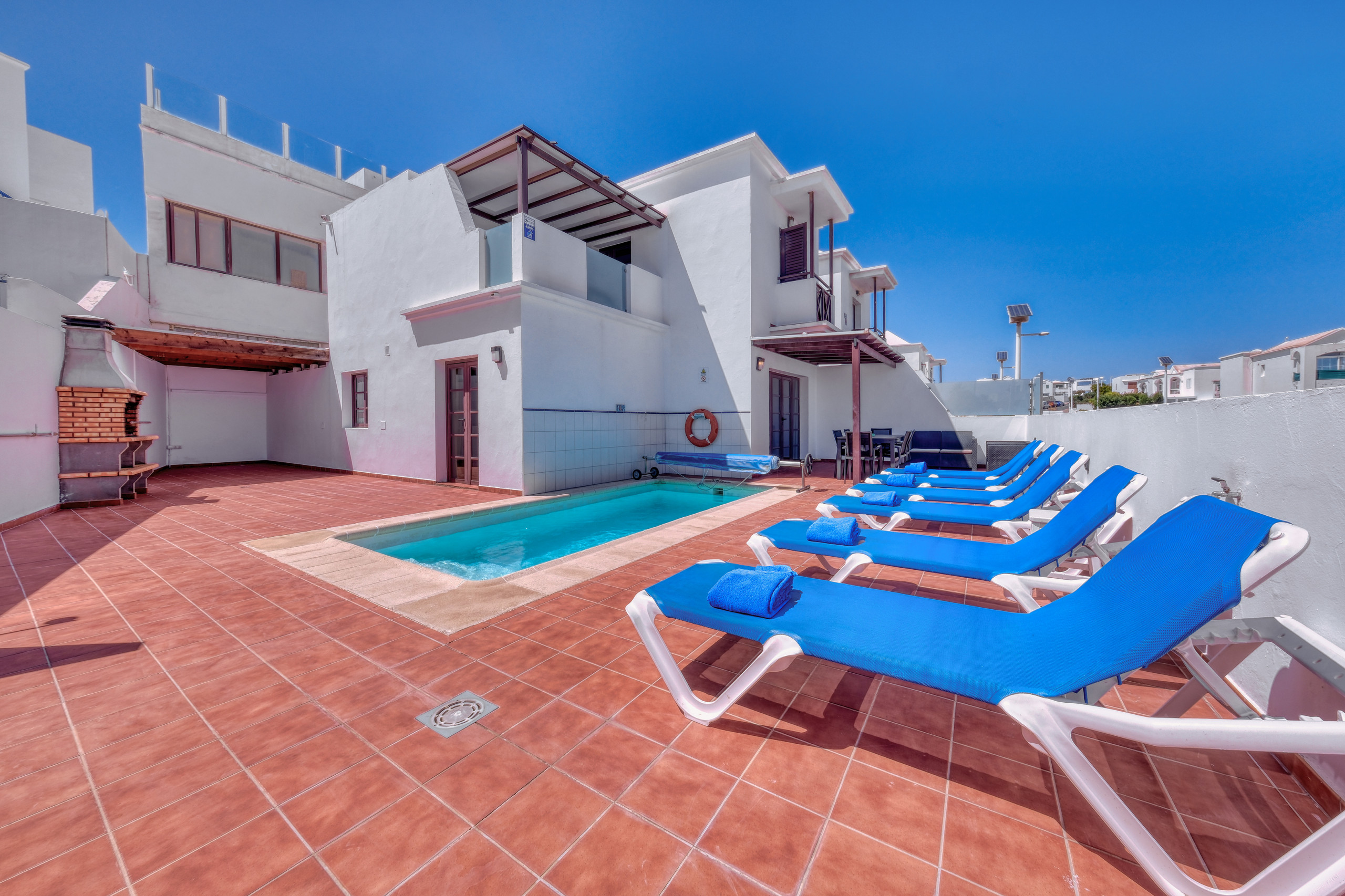 El exterior es, sin duda, uno de los grandes atractivos de la villa. Cuenta con una agradable zona de terraza con muebles de exterior, perfecta para disfrutar del clima de Lanzarote durante todo el año. La piscina privada climatizada (con un suplemento) invita a refrescarse y relajarse en total privacidad, mientras que la zona con tumbonas es ideal para tomar el sol. Encontrarás además un espacio con mesa exterior y barbacoa, perfecto para compartir comidas y cenas al aire libre en un ambiente tranquilo y acogedor.