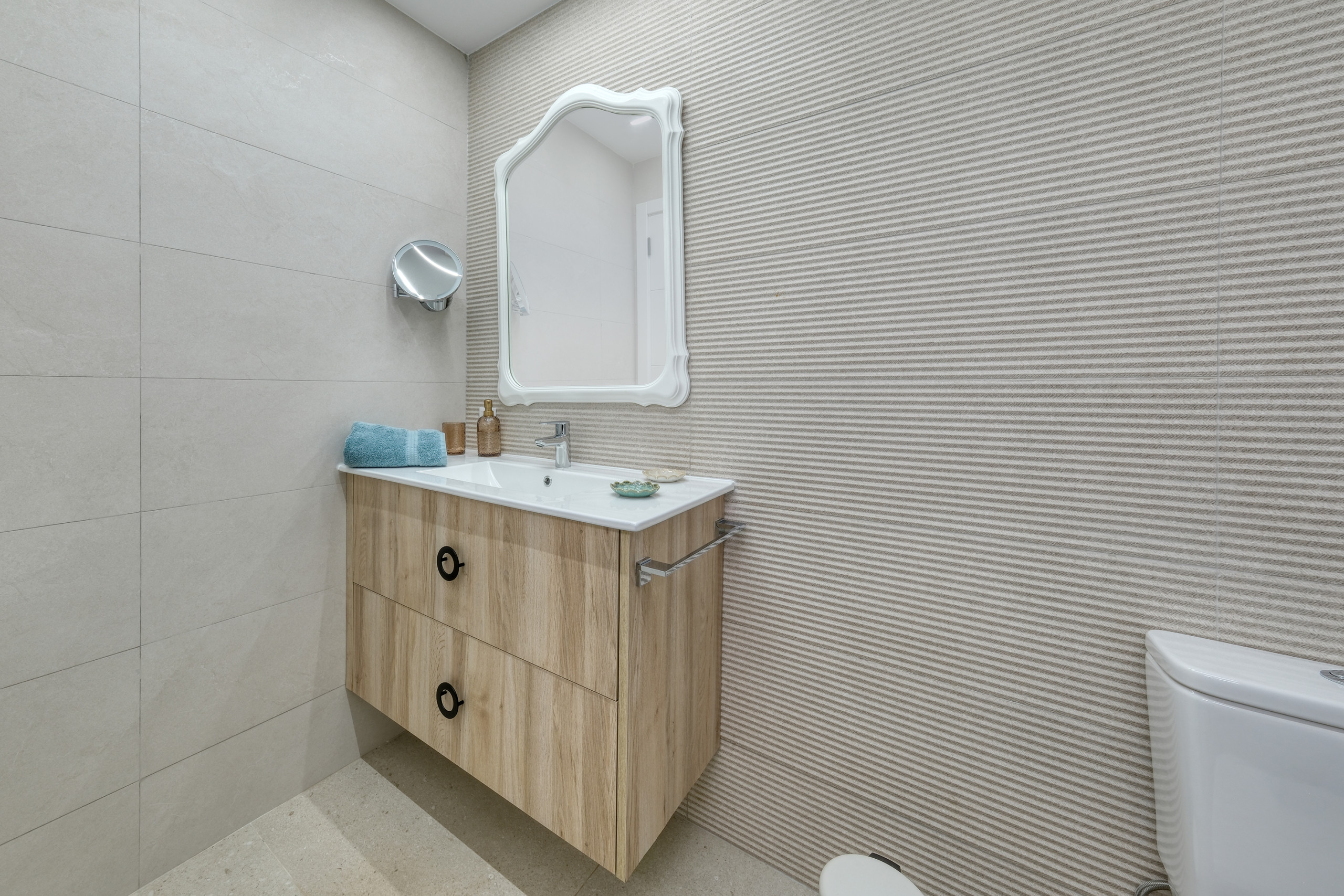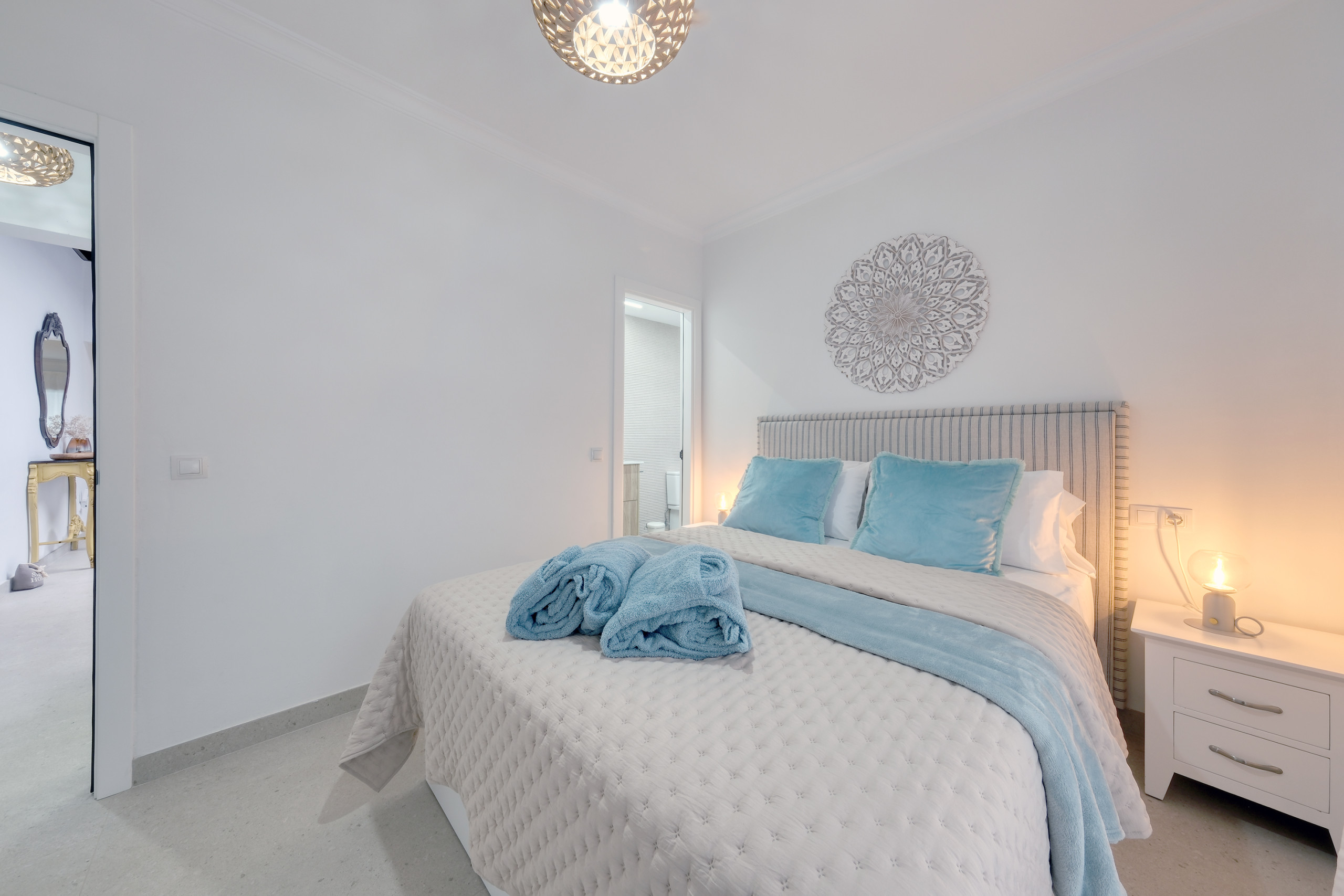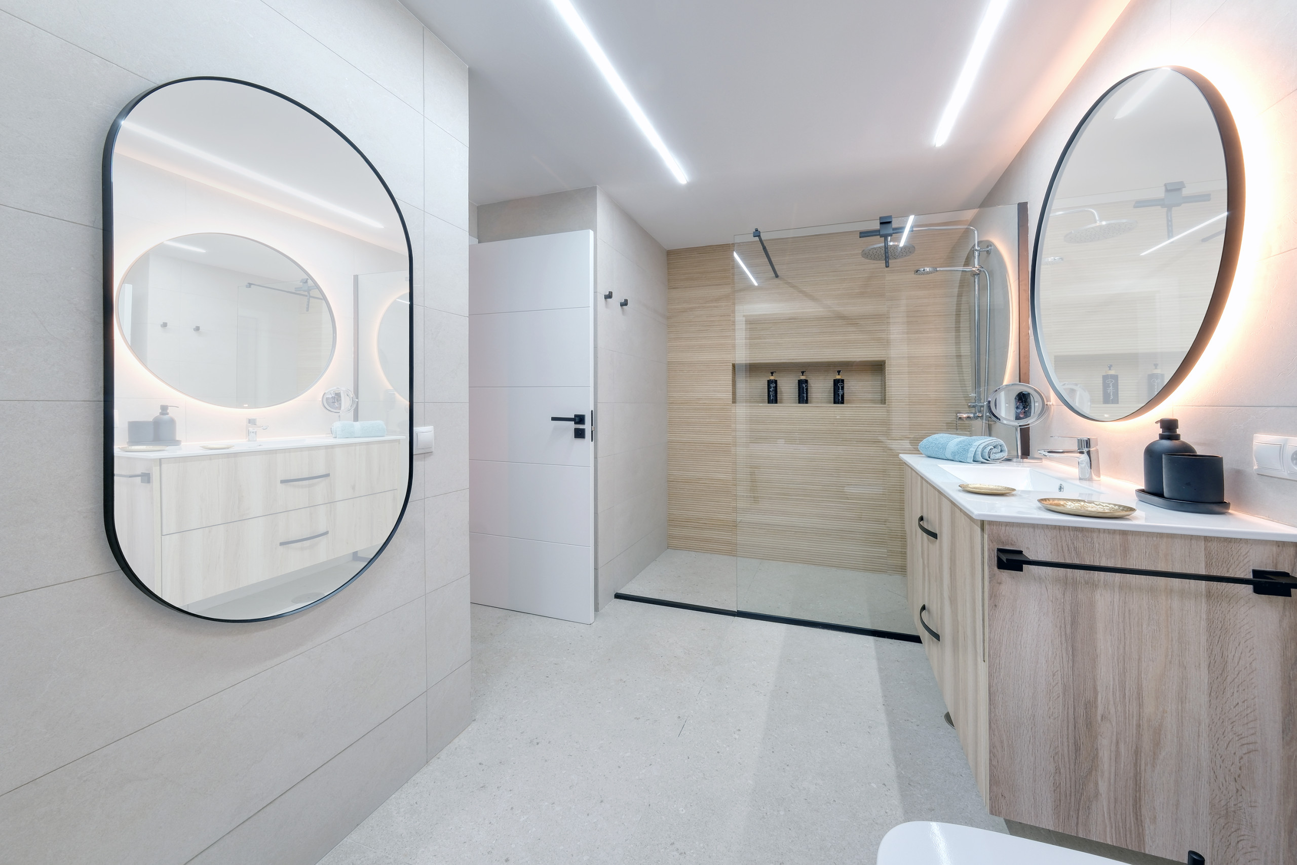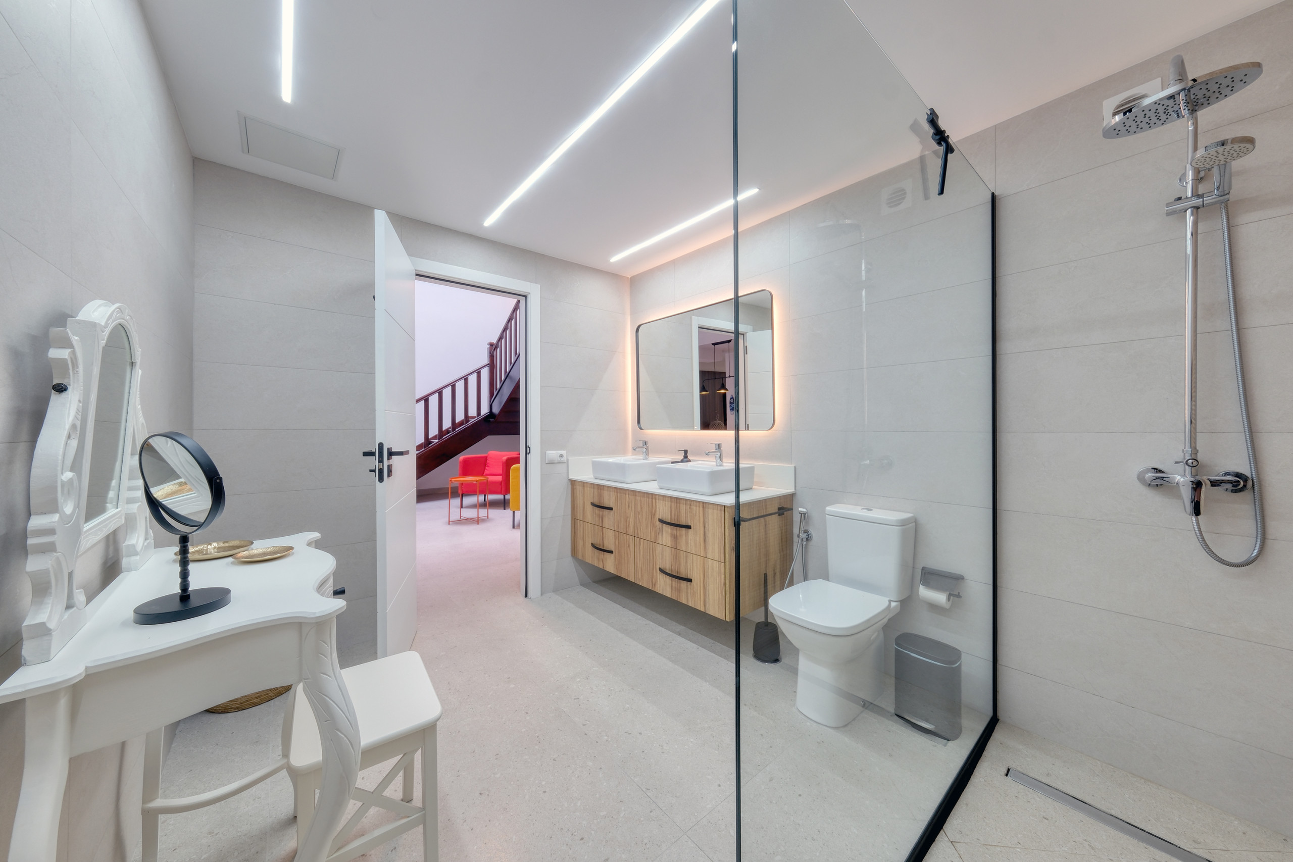 On this floor are two exclusive bedrooms with double beds, built-in wardrobes, and private en-suite bathrooms. Both feature a shower tray, hairdryer, and first-class finishes; one of them also includes an elegant bathtub for moments of maximum relaxation.